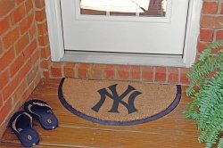 This durable Half Moon Door Mat is made of coir fiber and pressed rubber. Perfect for the porch, garage, back door, or wherever a smaller welcome mat is needed. Measures 29.5 x 17.5 inches.